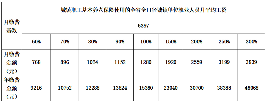 三、参保人员2024年度实际缴费年限本人缴费工资指数,按当年职工本人月缴费基数与全省上年度全口径城镇单位就业人员月平均工资6397元的比值据实计算。其中,暂按2023年度标准缴纳了2024年度企业职工基本养老保险费的无雇工的个体工商户和灵活就业人员,低于最低缴费档次60%标准的,应补齐差额部分金额。